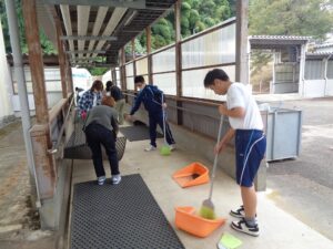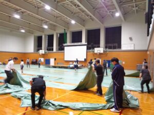 保護者、生徒、教員合わせて約75名が参加し、文化祭に向けて、体育館の会場設営や体育館周辺の清掃等を行いました。参加者が互いに協力して活動に取り組み、連帯感を深めることができました。