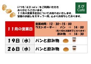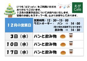 ラストオーダーについて、パン販売は14:00、飲み物は14:30とさせていただきます。