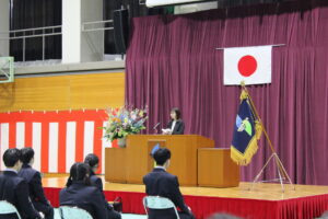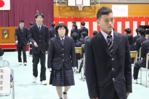 在校生・保護者・来賓・教職員が見守る中、卒業生たちは緊張した面持ちで入場し、卒業生が壇上で卒業証書を受け取る姿には、一人ひとりのこれまでの努力と成長の歩みが感じられました。