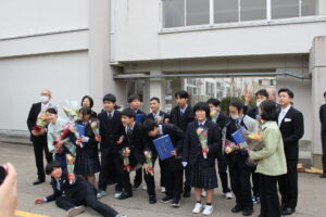 送りで在校生からエールを送られ、卒業生は1本締めで返礼していました。在校生の花道を名残惜しい様子で通っていきましたがそれぞれの道を進むべく、11期生として未来への希望を胸に新たな一歩を踏み出しました。